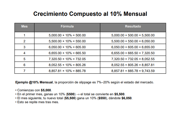 La verdadera ventaja de nuestro sistema es el interés compuesto. Cada ganancia se reinvierte automáticamente en tu portafolio, creando un ciclo de crecimiento que se fortalece con el tiempo. Nuestro plan y software trabajan juntos para aprovechar el potencial exponencial del cripto mientras mantienen el riesgo bajo control.